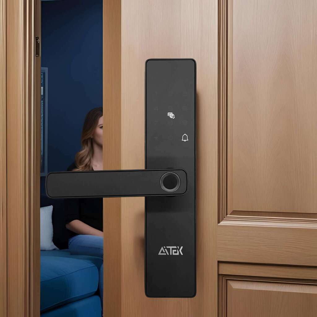 Controle de acesso robusto com a Fechadura Biométrica Aitek SIGMA-FE07. Suporta 100 usuários por digital, senha ou cartão. Possui alarme, design premium e chave de emergência. Ideal para residências e escritórios.